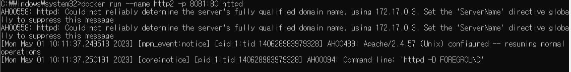5. docker run -p 80:80 httpd (앞에 80은 host 뒤에 80은 컨테이너를 가리킨다)