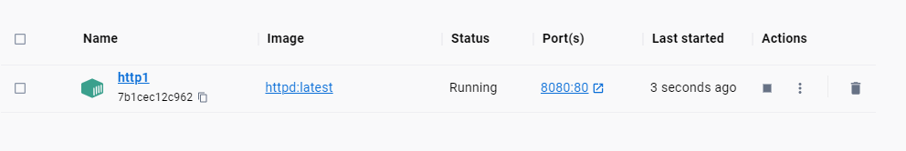 - host port 안에 :80은 이미지에서 설정된 포트